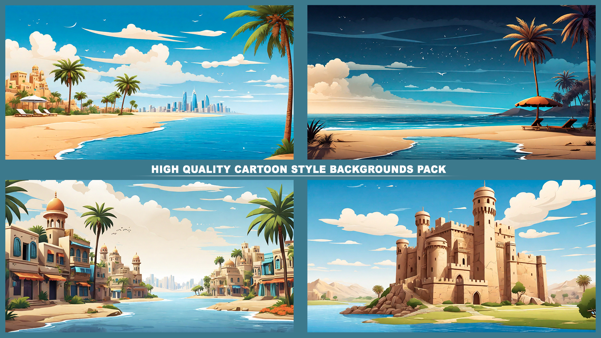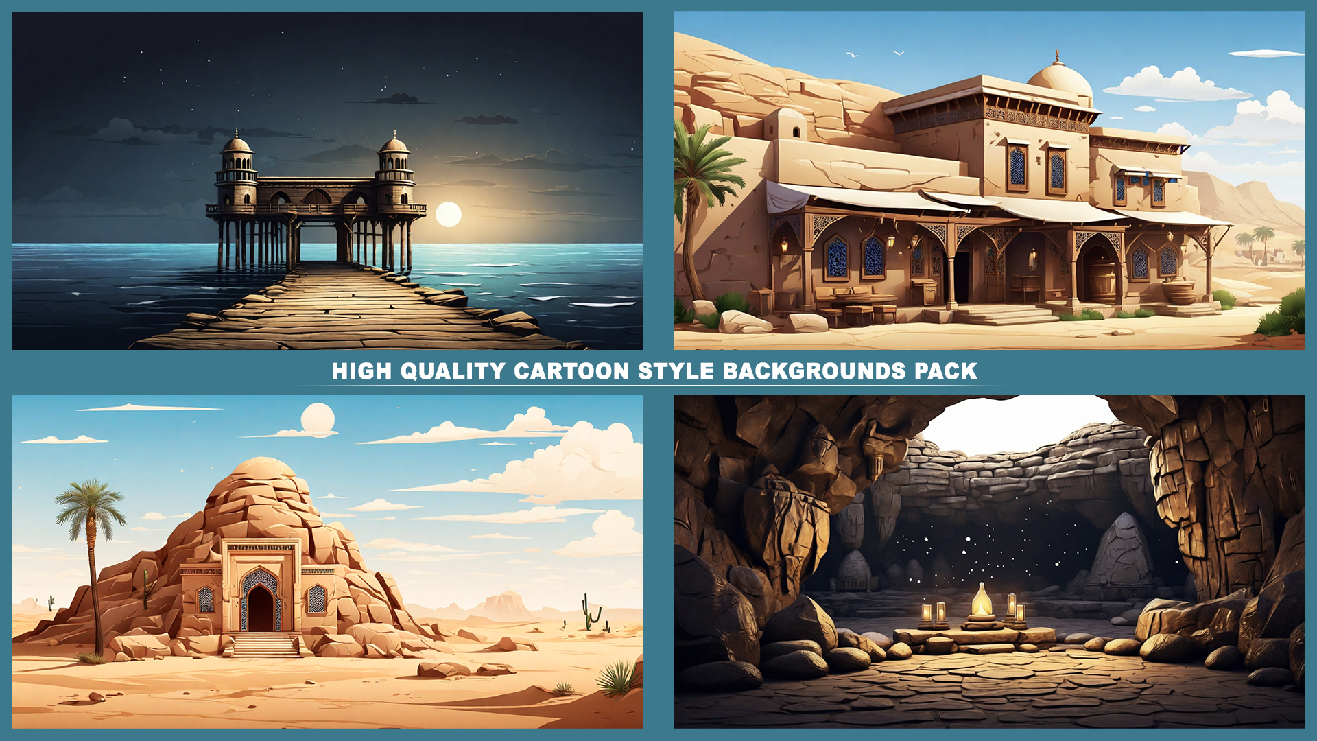 Set of 110+ cartoon style ARABIAN background environments.