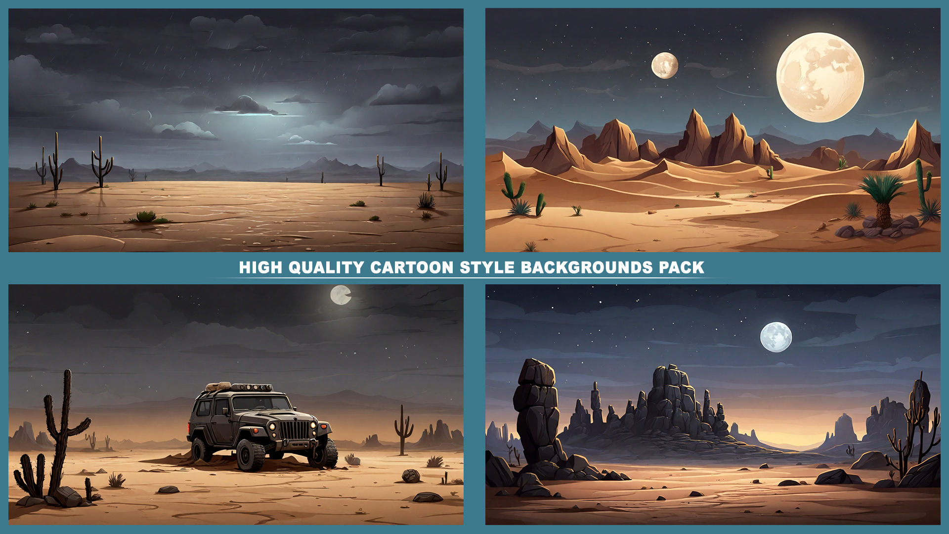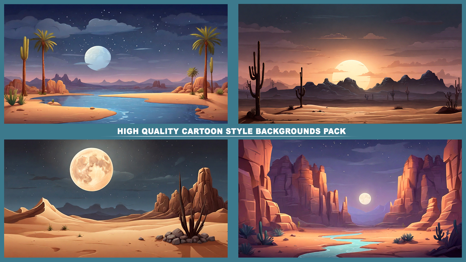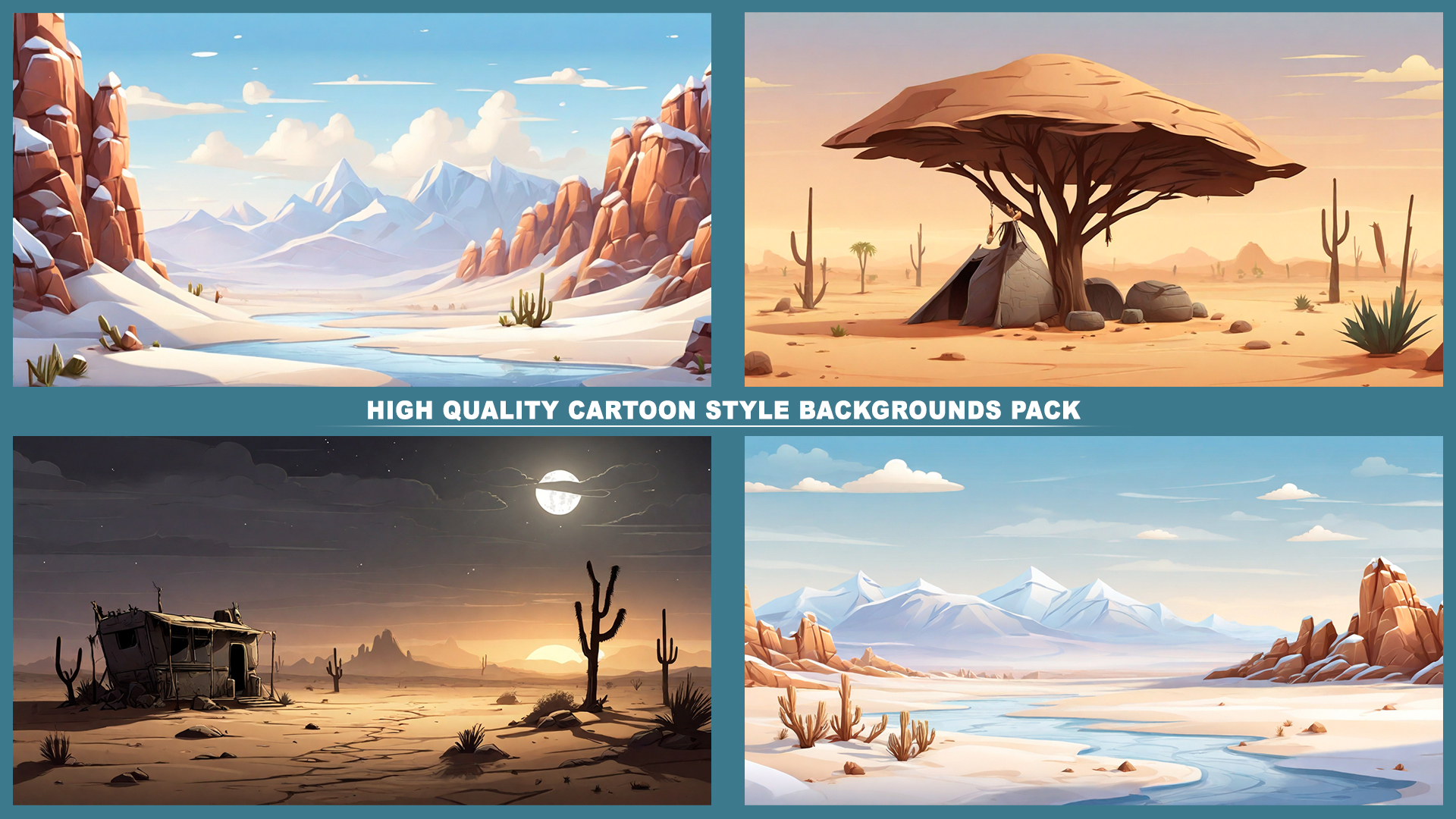 Set of 110+ cartoon style DESERT background environments.