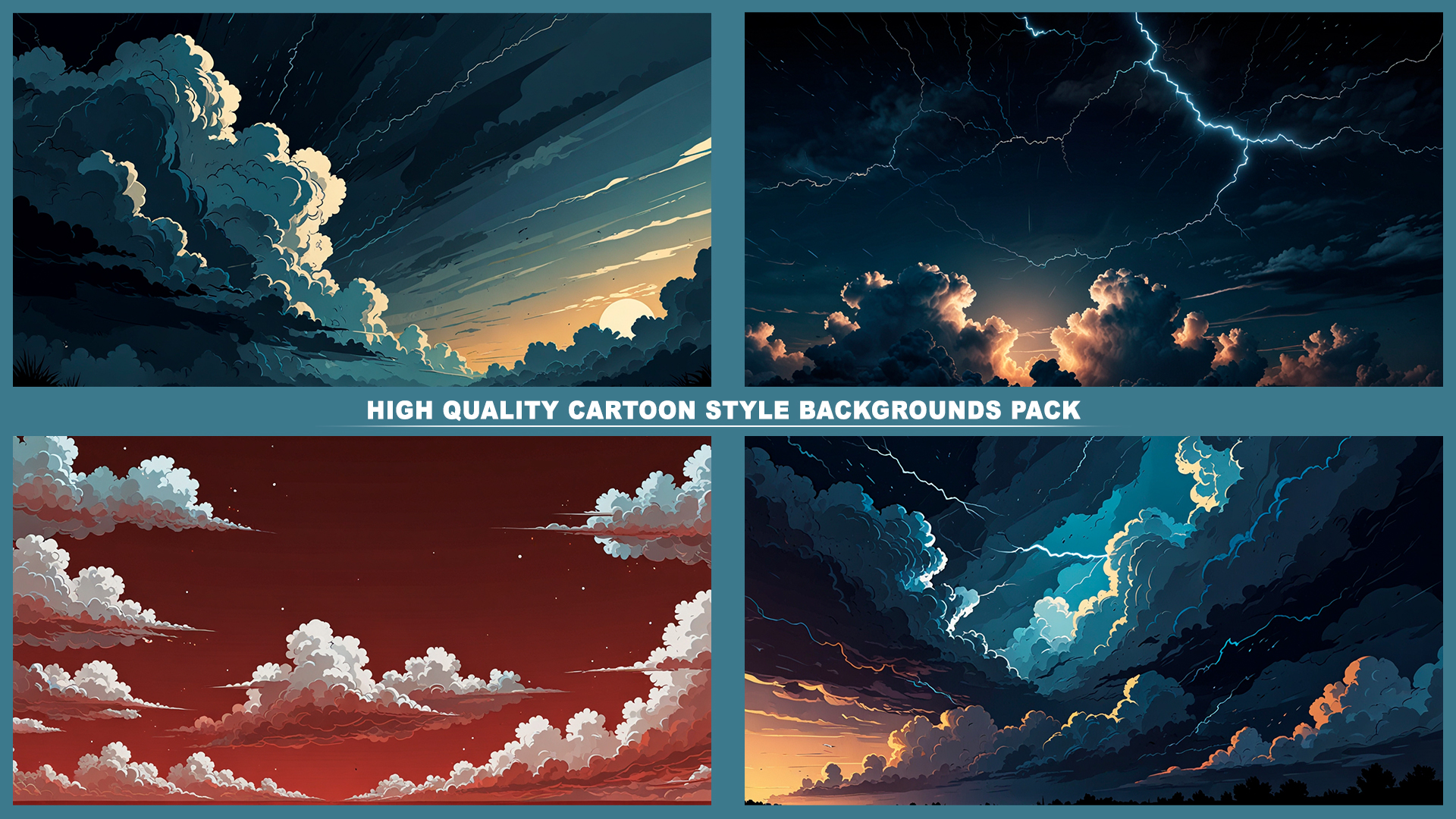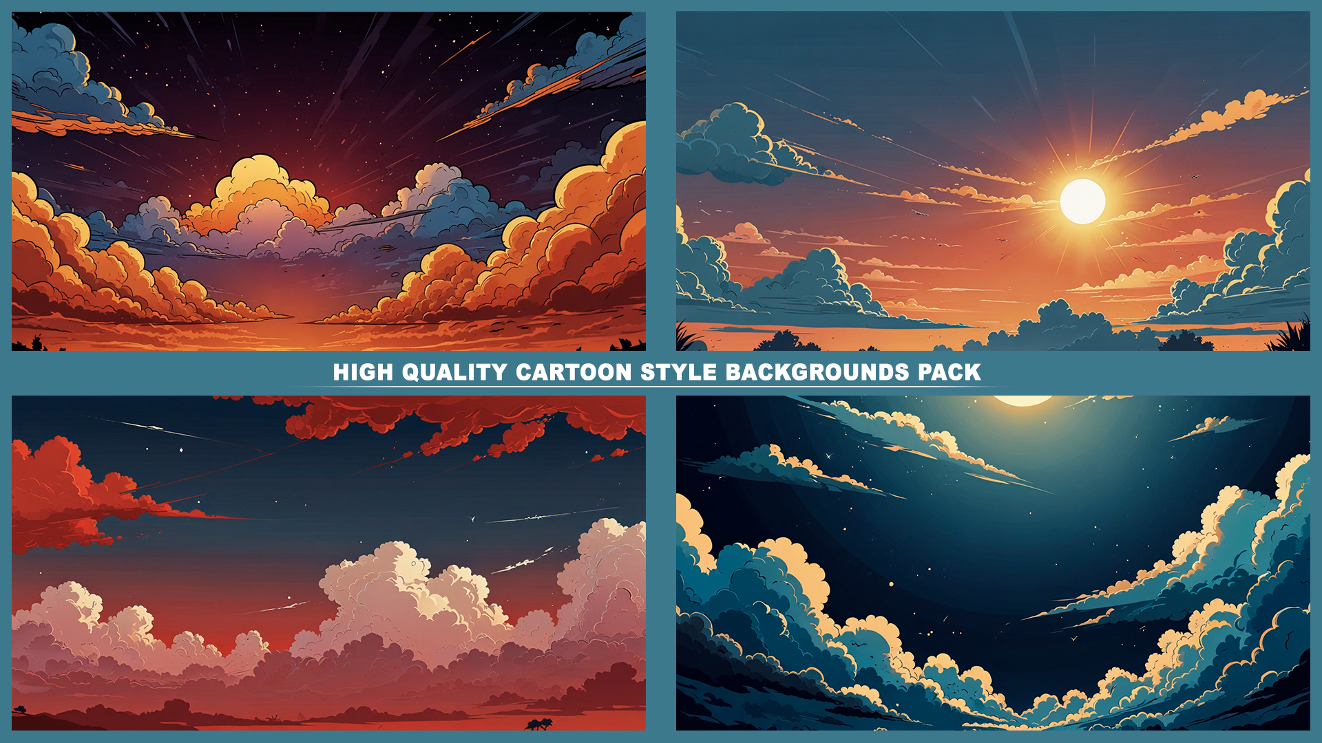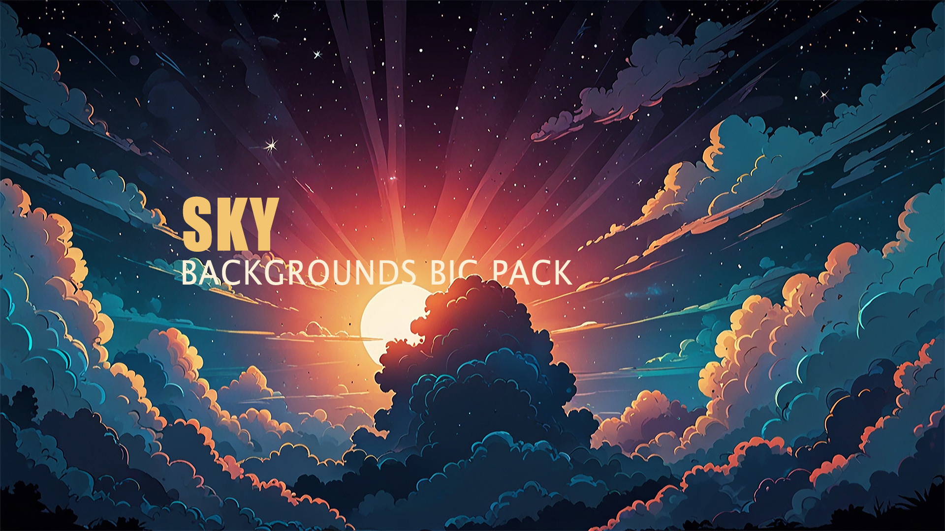 Set of 110+ cartoon style SKY 2D background environments.