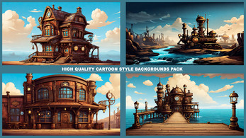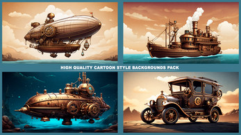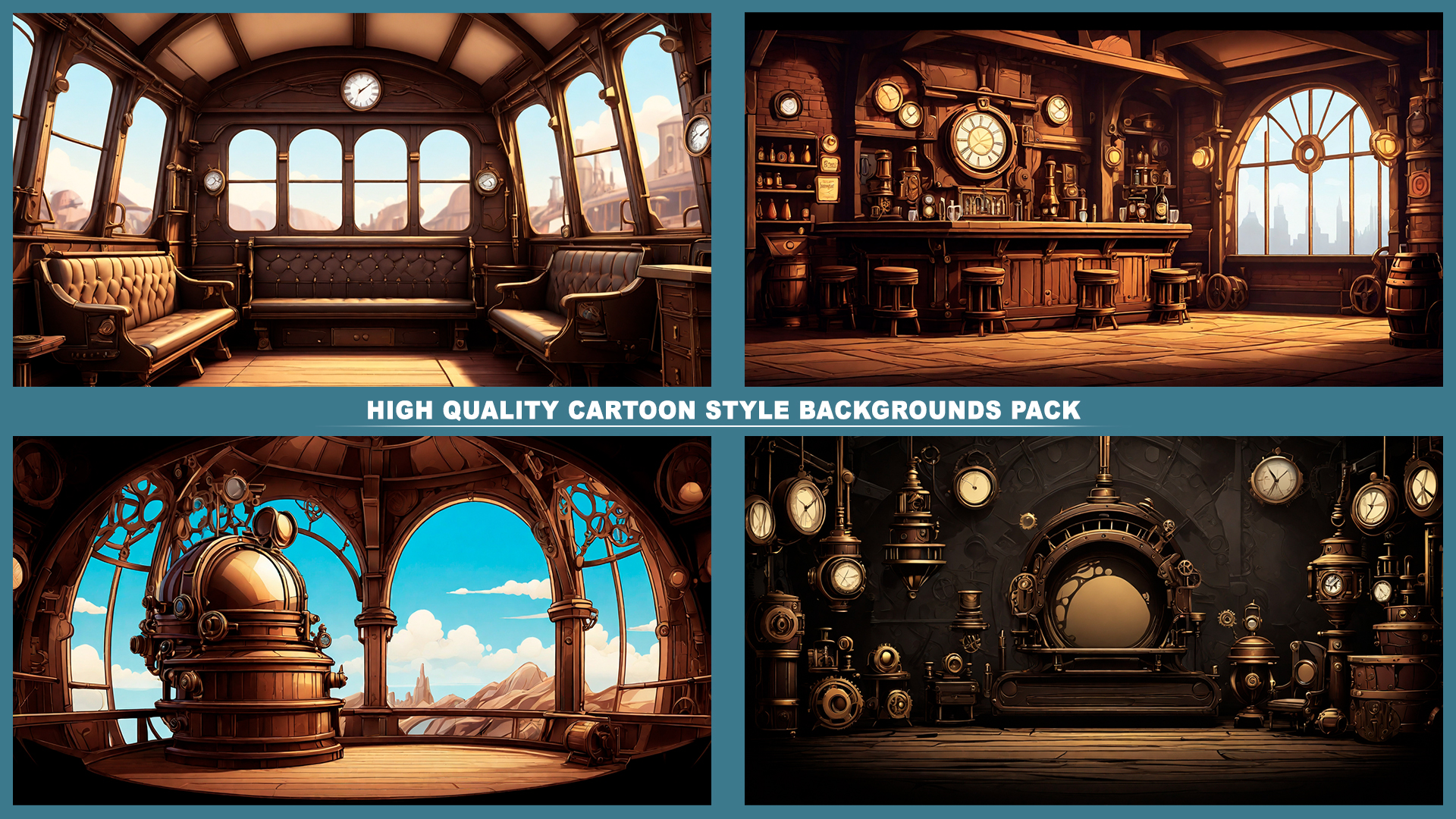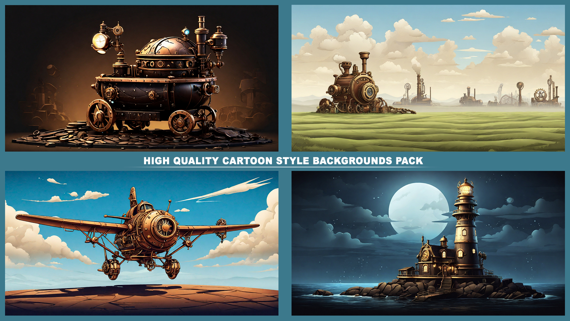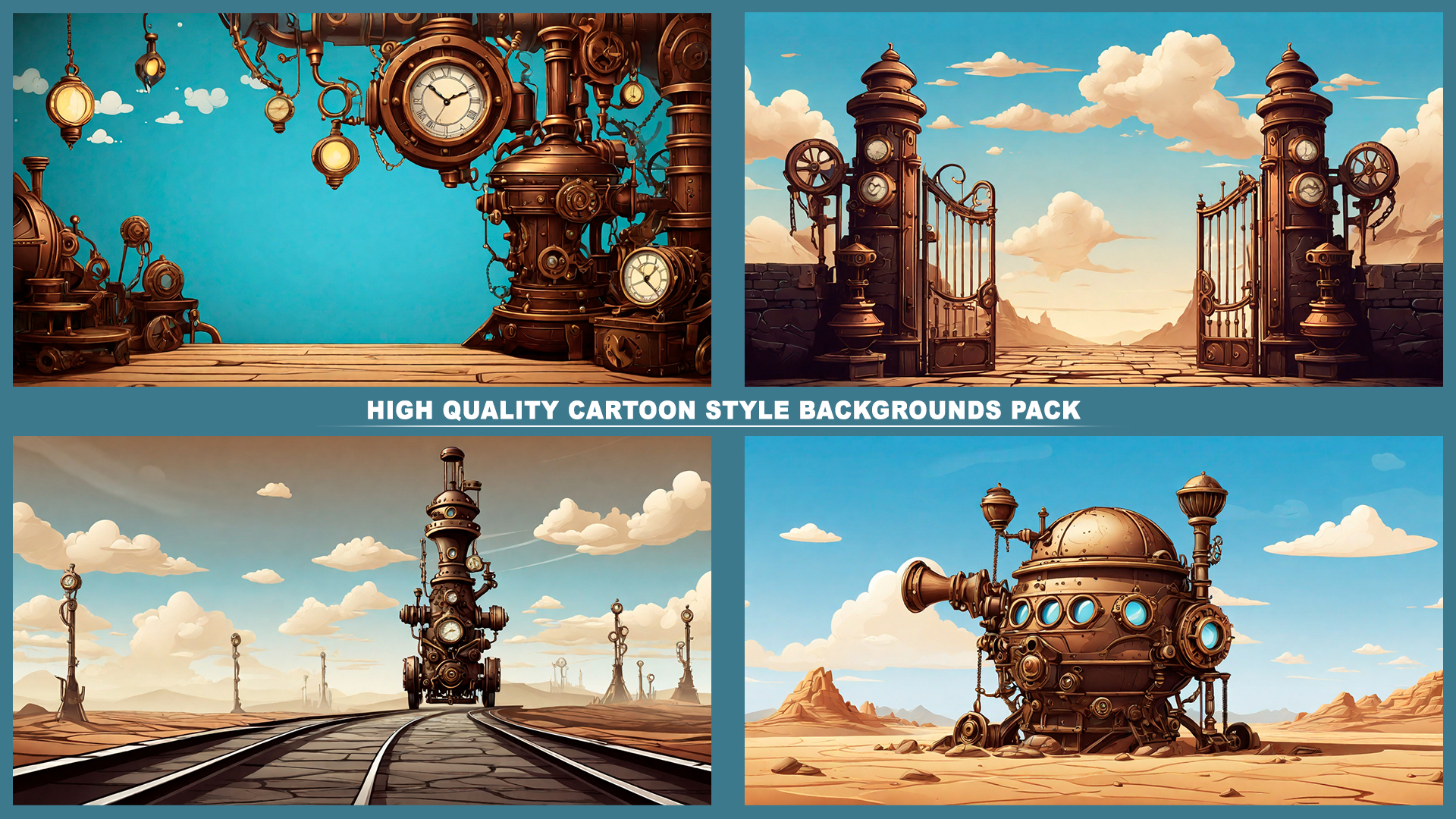 Set of 110+ cartoon style STEAMPUNK background environments.