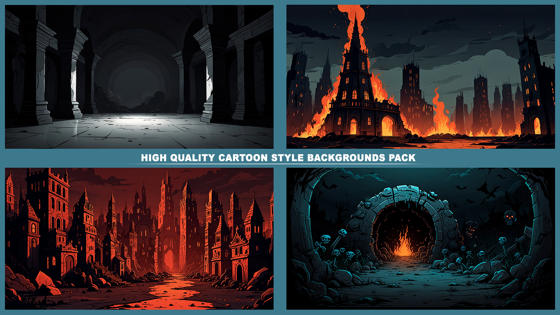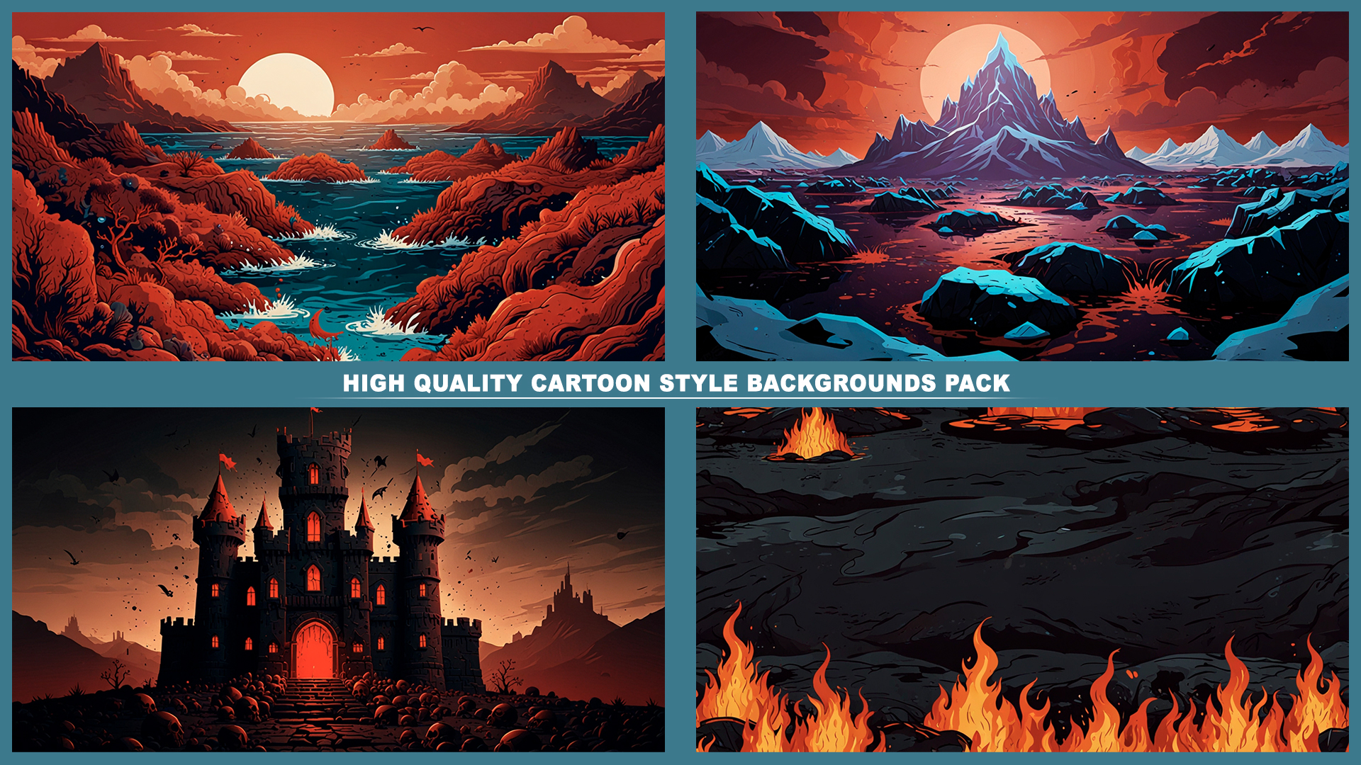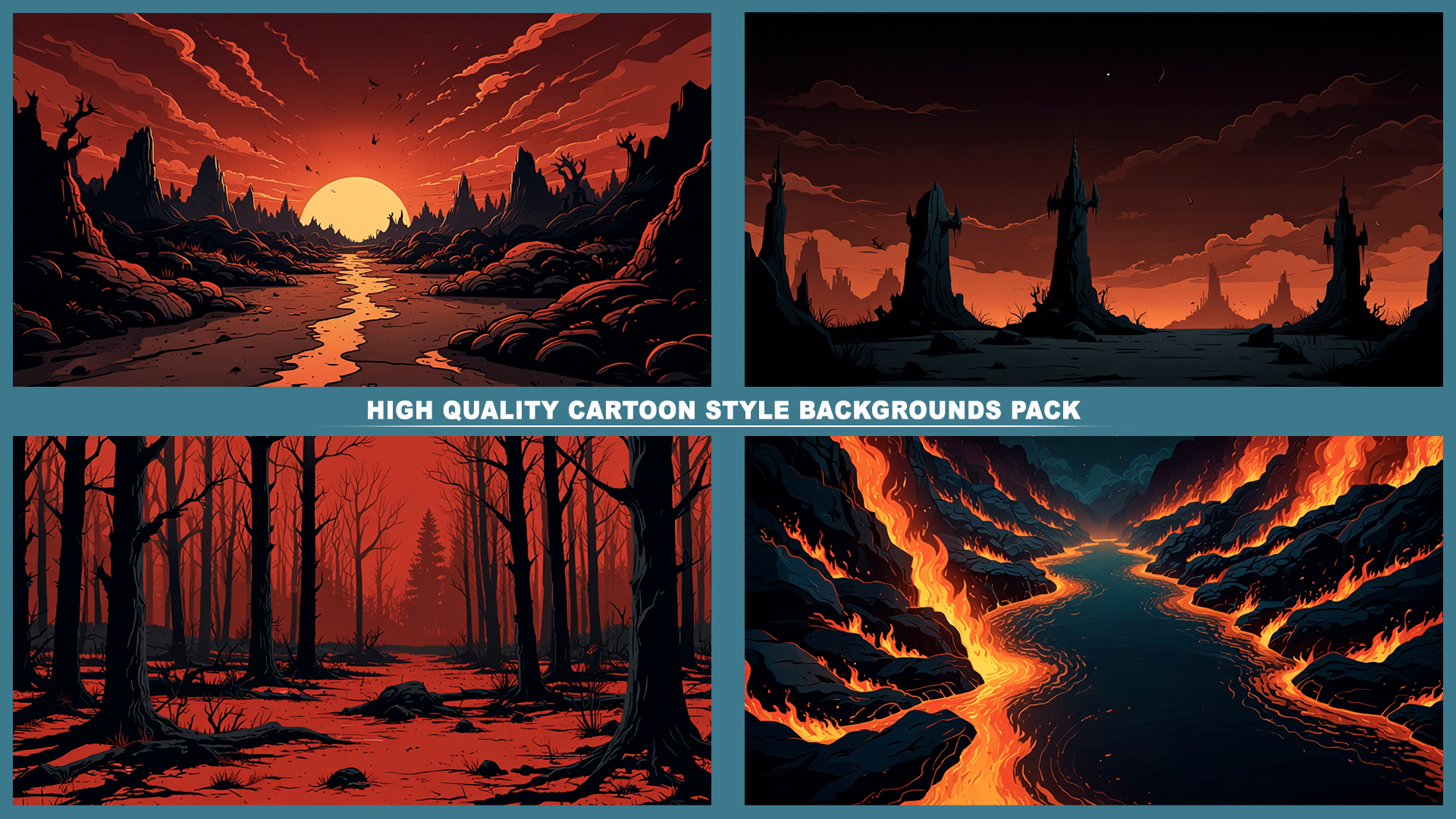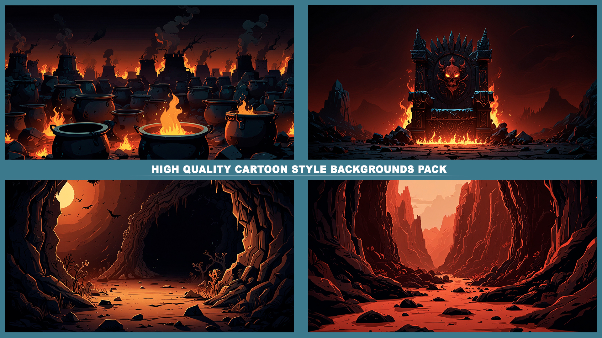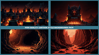 Set of 120+ cartoon style HELL DEMONIC 2D background environments.