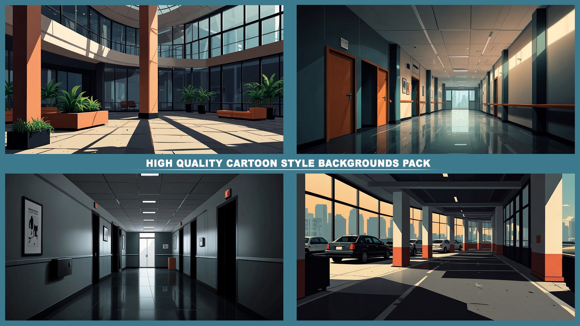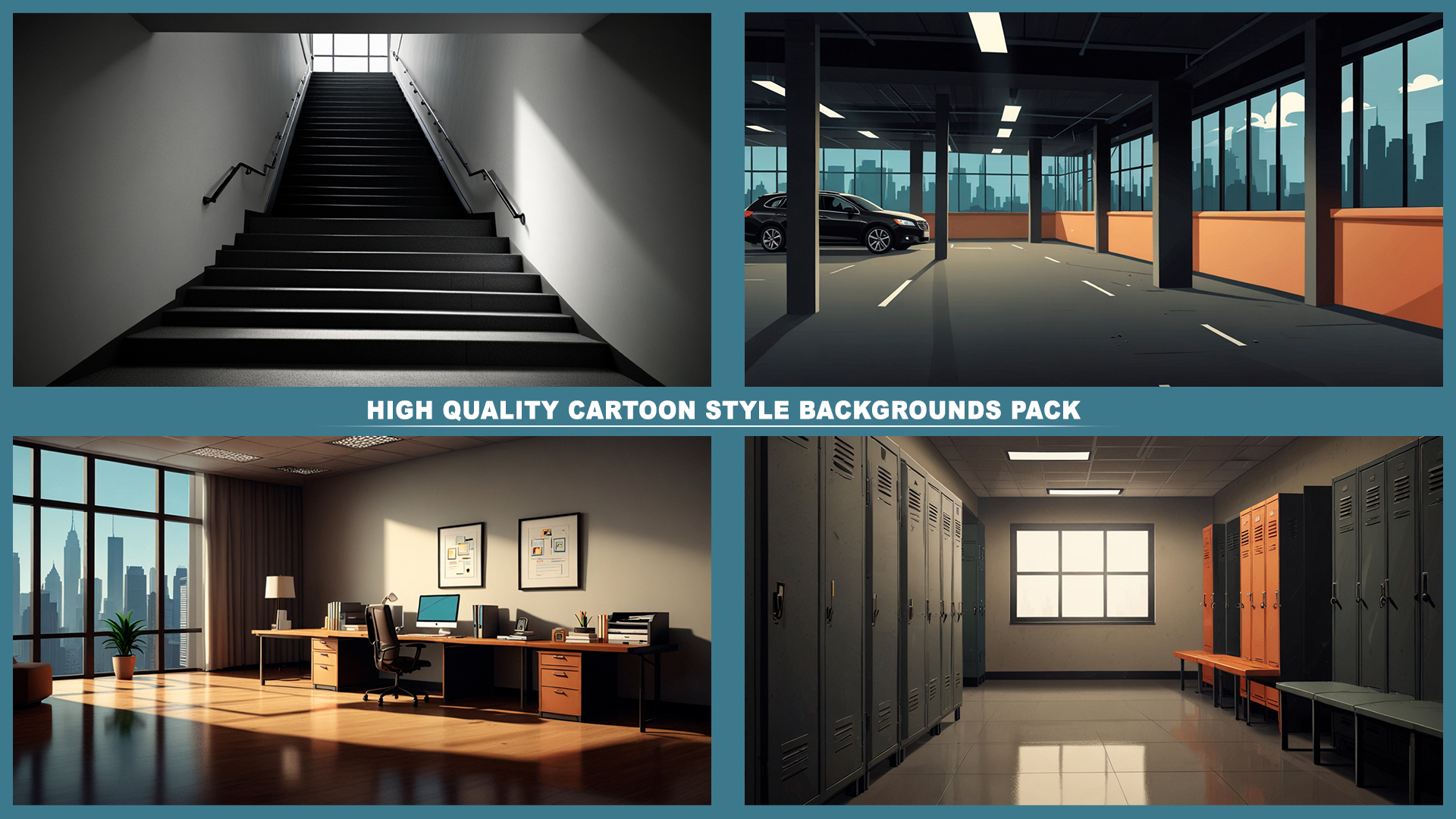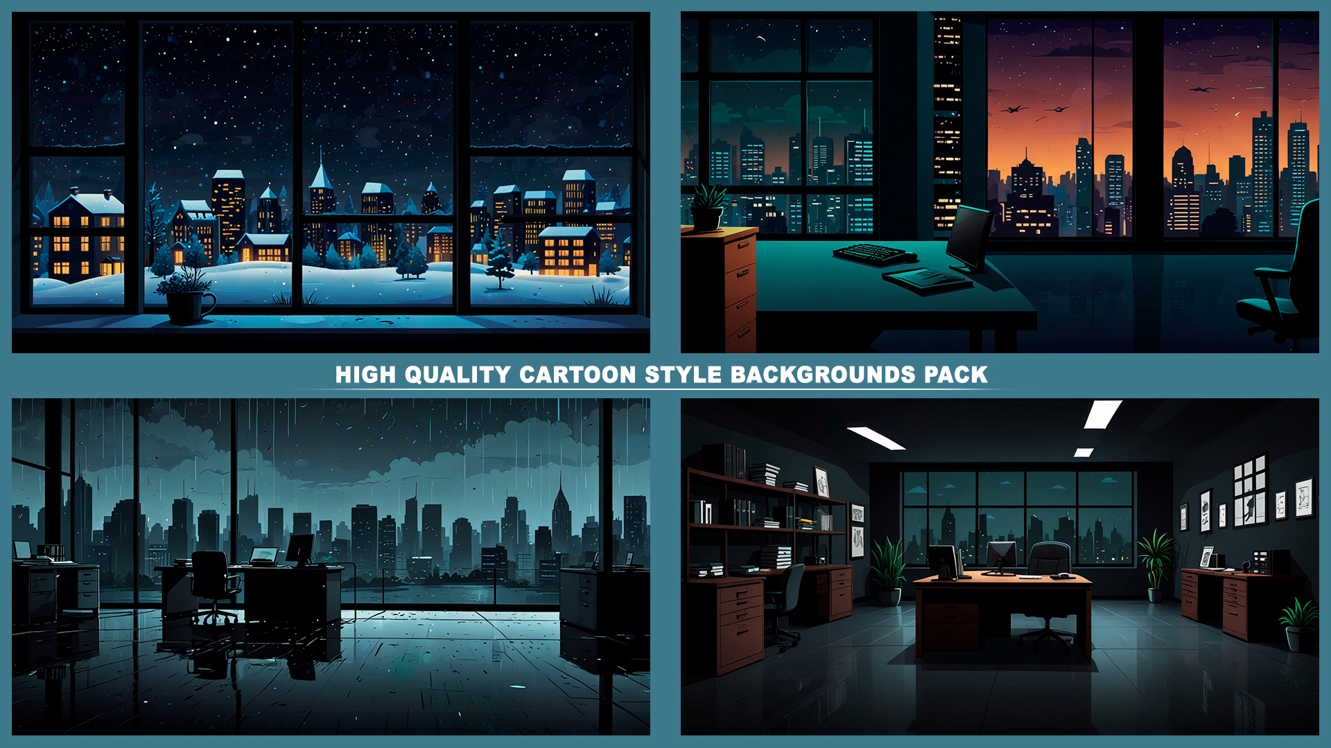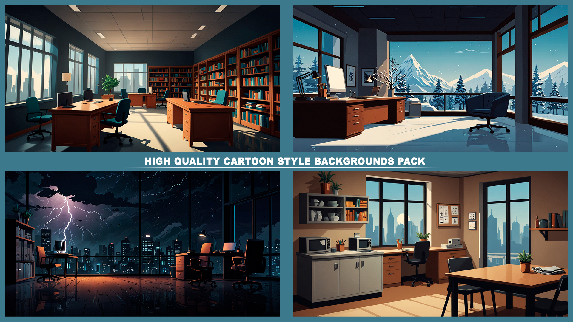 Set of 120+ cartoon style OFFICE background environments.