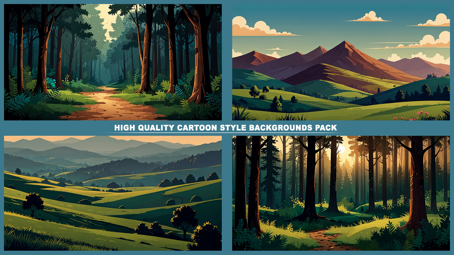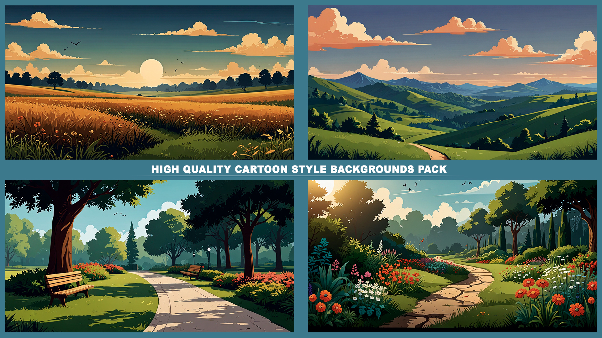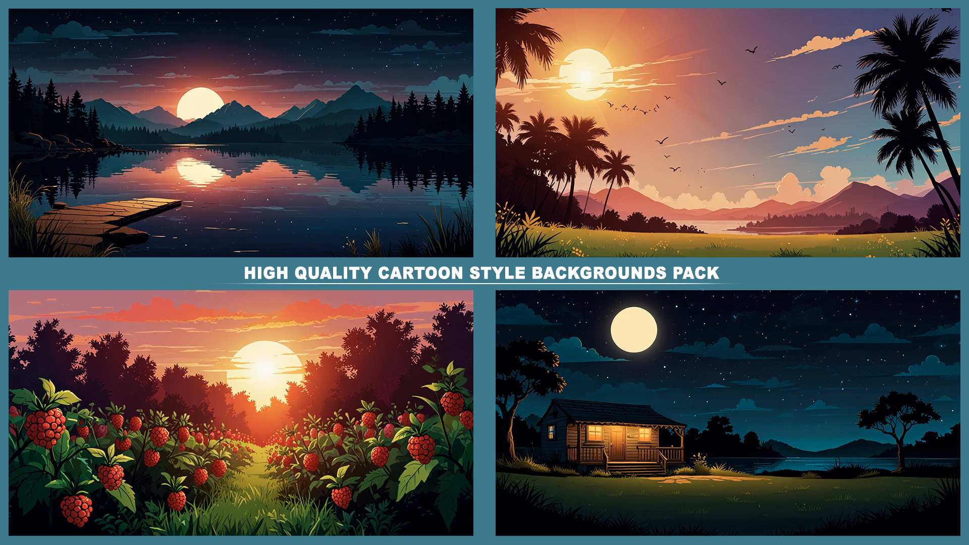 Set of 120+ cartoon style SUMMER 2D background environments.