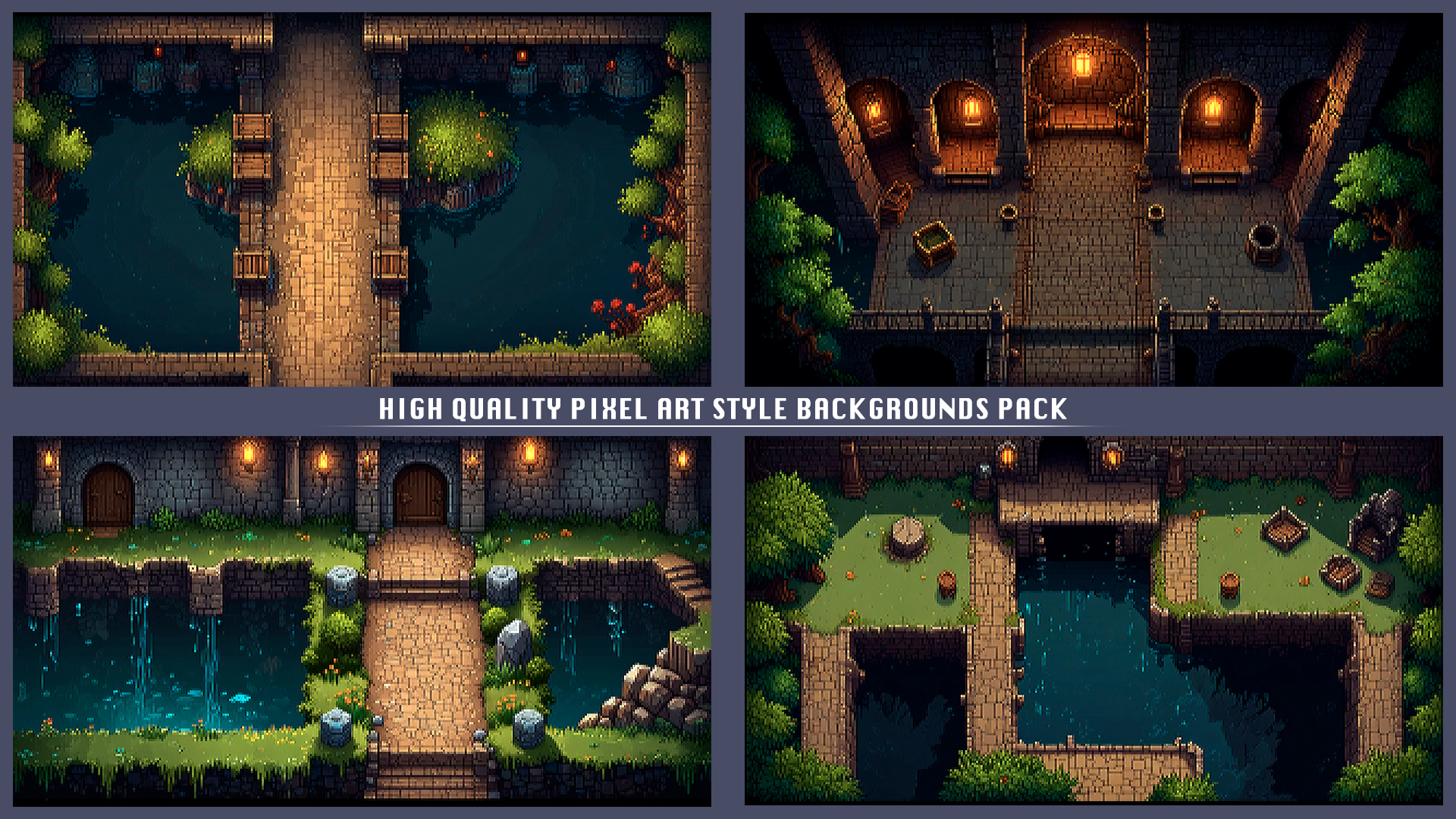 Set of 135 pixel art style TOPDOWN DUNGEON background environments.